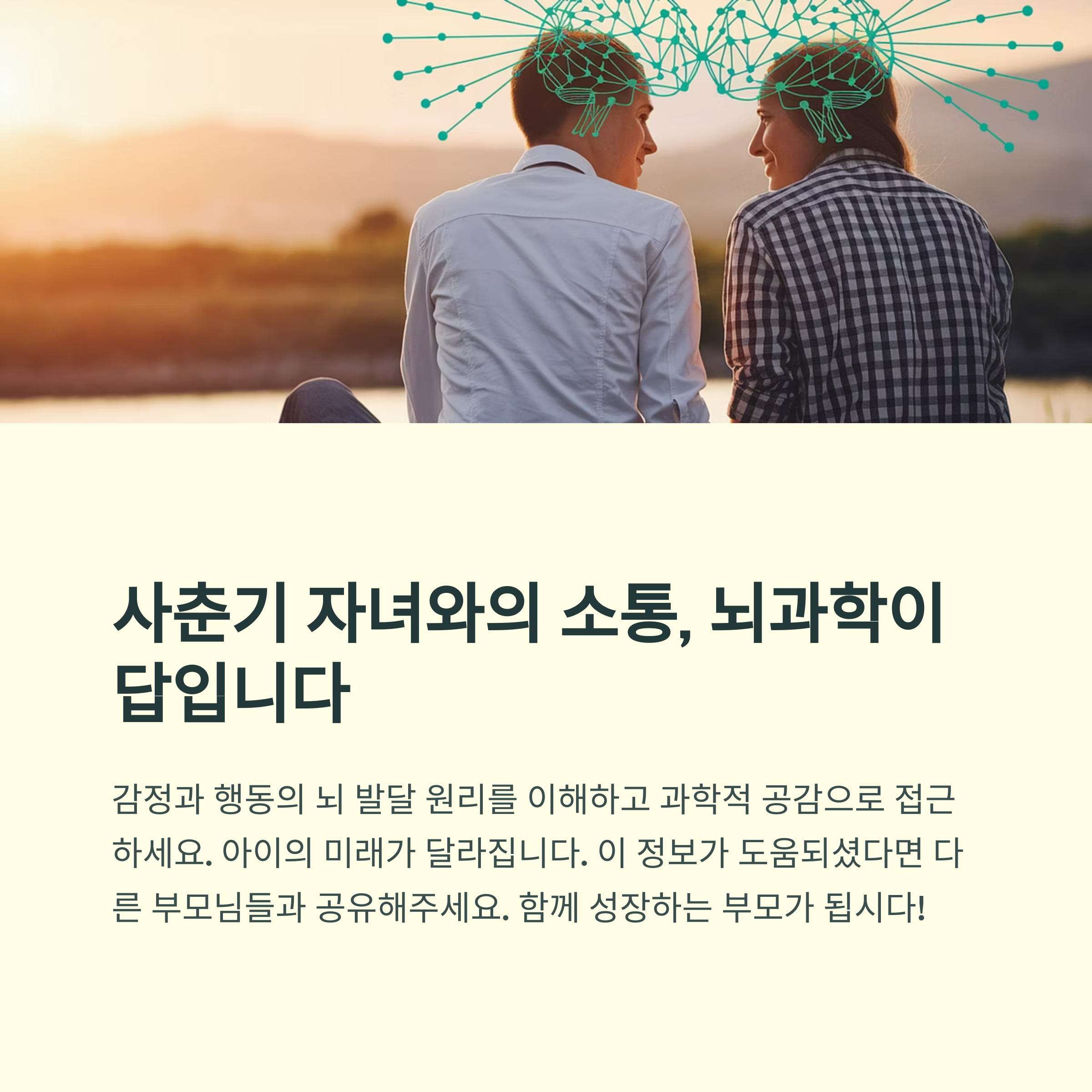 안녕하세요. 오늘은 ‘사춘기 아이의 뇌’에 대해 이야기해보려 합니다. 우리가 자주 마주하는 아이의 예민함, 충동, 무기력은 단지 성격이나 버릇 때문만은 아닙니다. 사춘기 뇌는 공사 중입니다. 정서, 판단, 공감, 자제력… 이 모든 것을 담당하는 뇌 부위들이 재정비되고 연결되고 있는 복잡한 시기를 지나고 있죠. 이해할 수 없던 그 반응들, 뇌를 들여다보면 조금은 이해할 수 있게 됩니다. 과학은 부모의 마음을 조금 더 넓게 만들어 줍니다. 이 글이 아이를 다시 바라보는 데 작은 단서가 되기를 바랍니다.