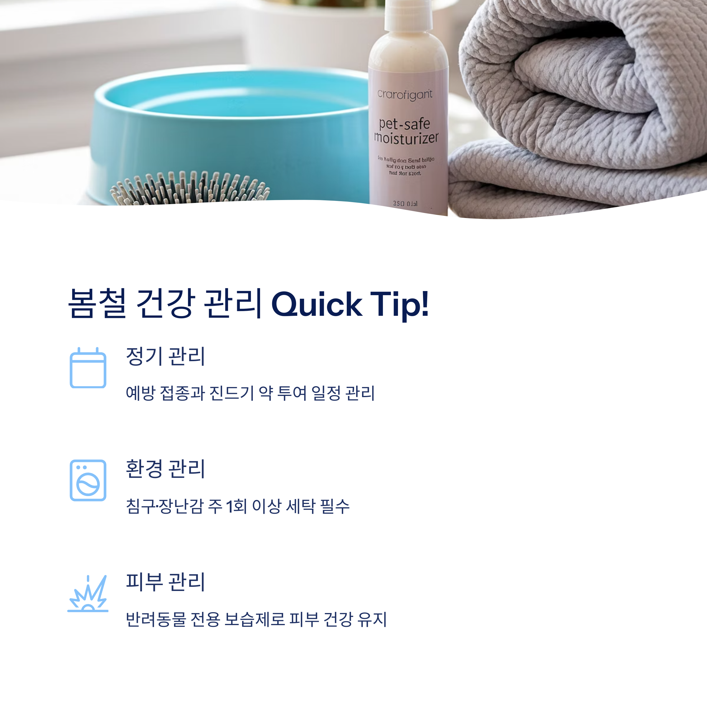 진드기, 알러지, 탈수, 사료 변질… 봄은 반려동물에게 있어 조용한 전쟁의 계절이기도 하거든요.