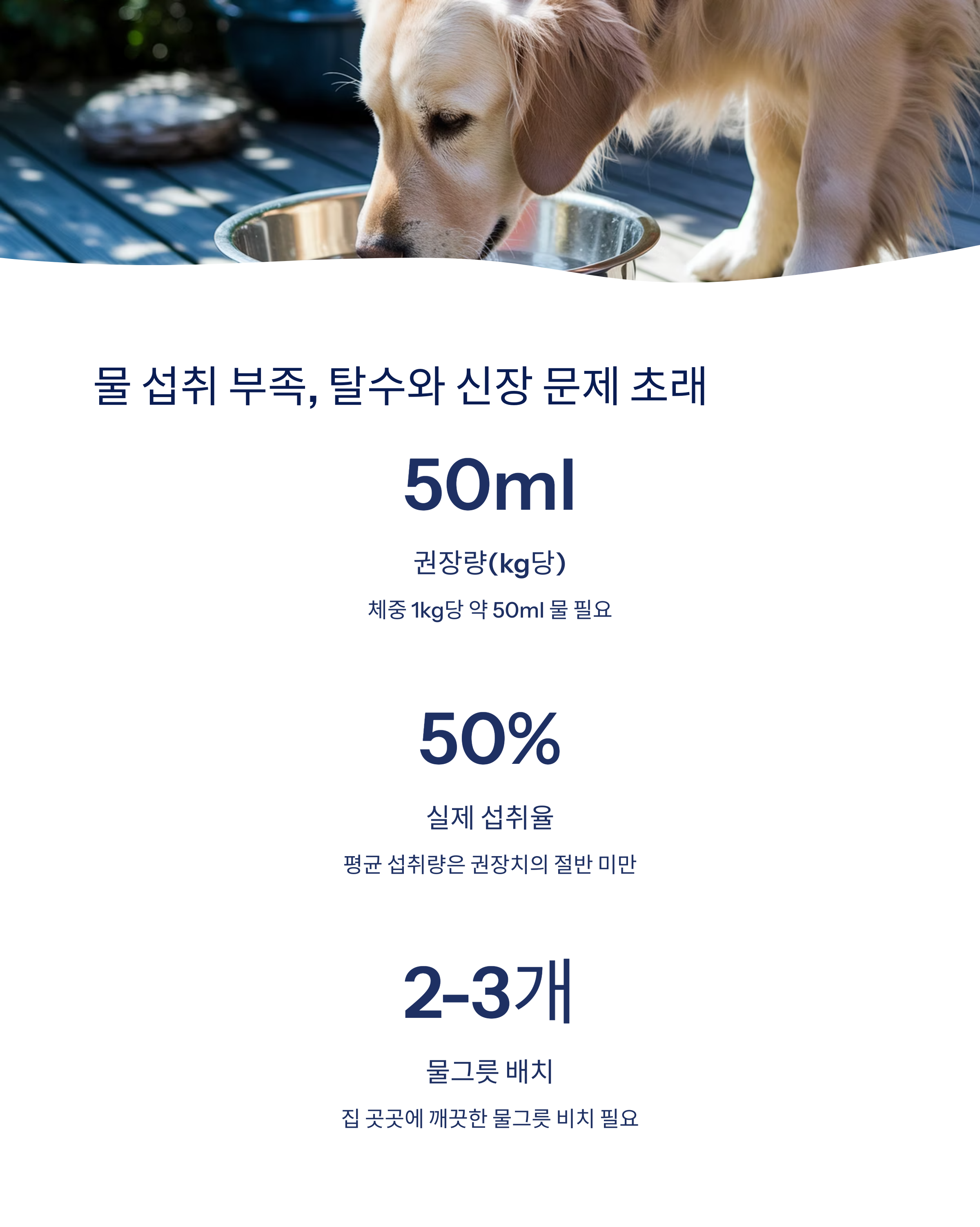 - 물을 잘 안 마시는 아이는, 사료에 무염 닭육수나 염분 제거한 멸치육수를 섞어보는 것도 방법입니다.