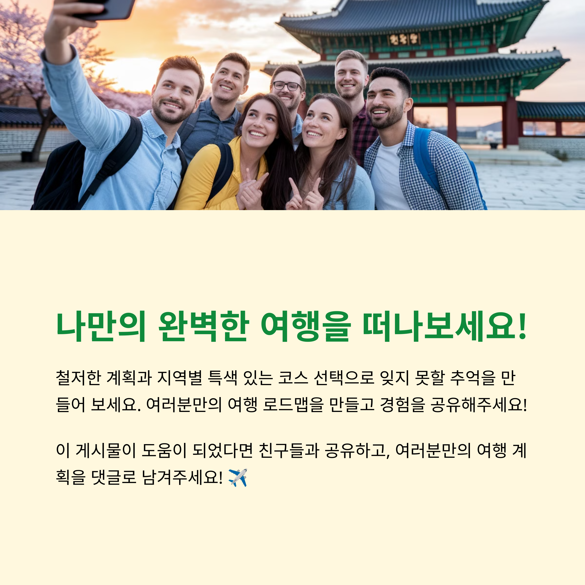 나만의 동선 정리법, 추천 지역 루트, 꼭 가야 할 스팟이 있다면 댓글로 알려주세요! 여행자들의 생생한 노하우가 서로에게 큰 도움이 됩니다.