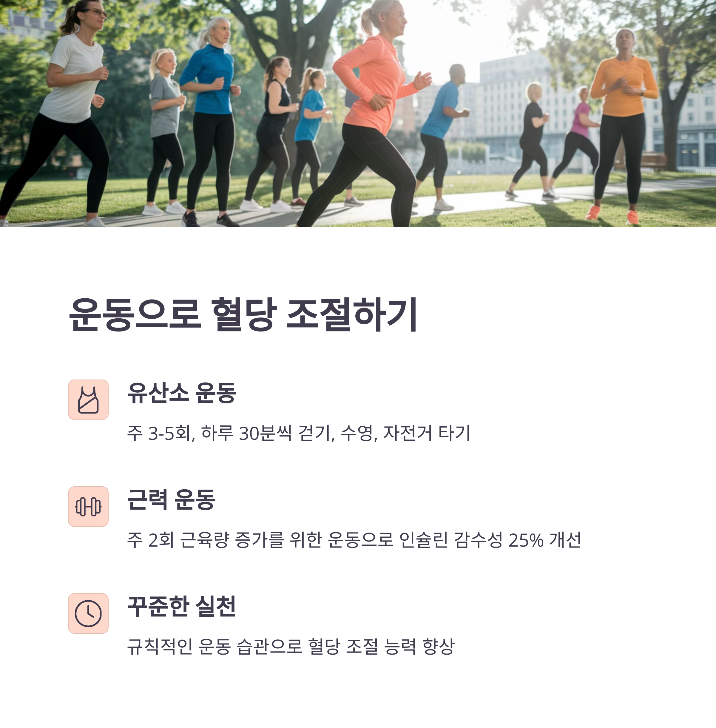 - 식후 걷기 – 가볍게 20~30분만 걸어도 혈당 조절에 큰 도움이 됩니다.
