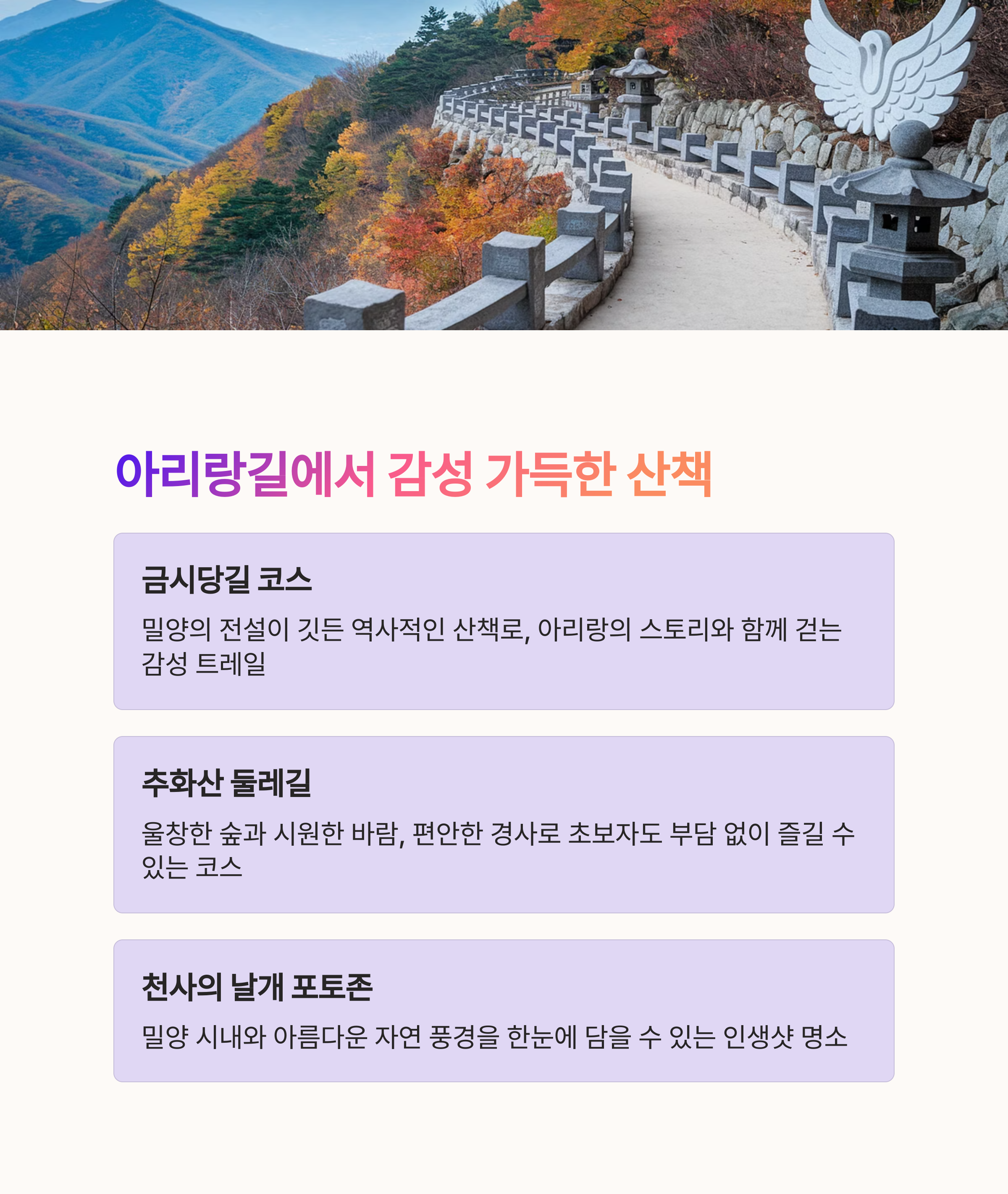 밀양 아리랑의 노랫말처럼, 고요하고도 감성적인 길.