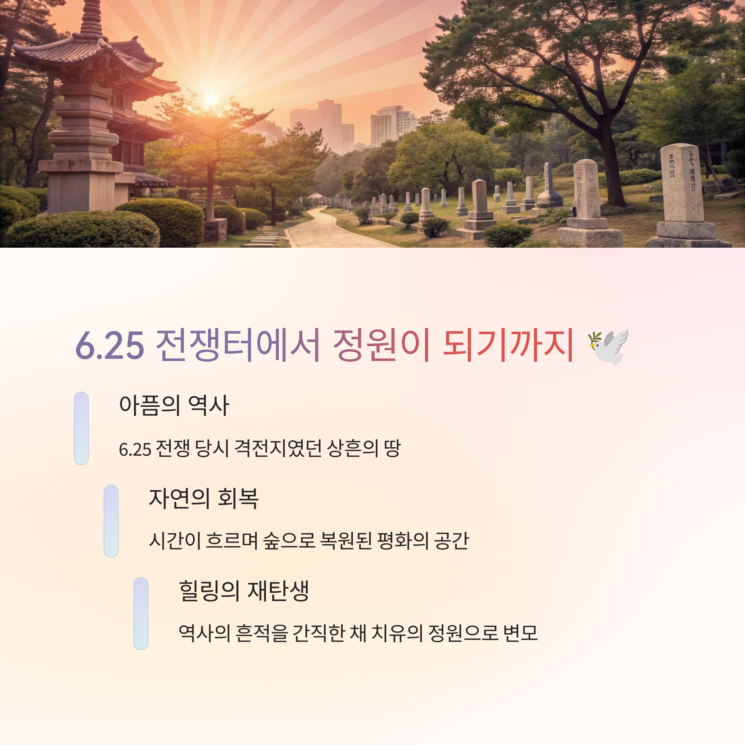 6.25 전쟁 이후 황폐화된 땅을 푸르게 만들겠다는 한 사람의 다짐으로 시작된 이 숲은 수십 년간 나무를 심고 가꾸며 조금씩 그 모습을 바꿔왔어요.