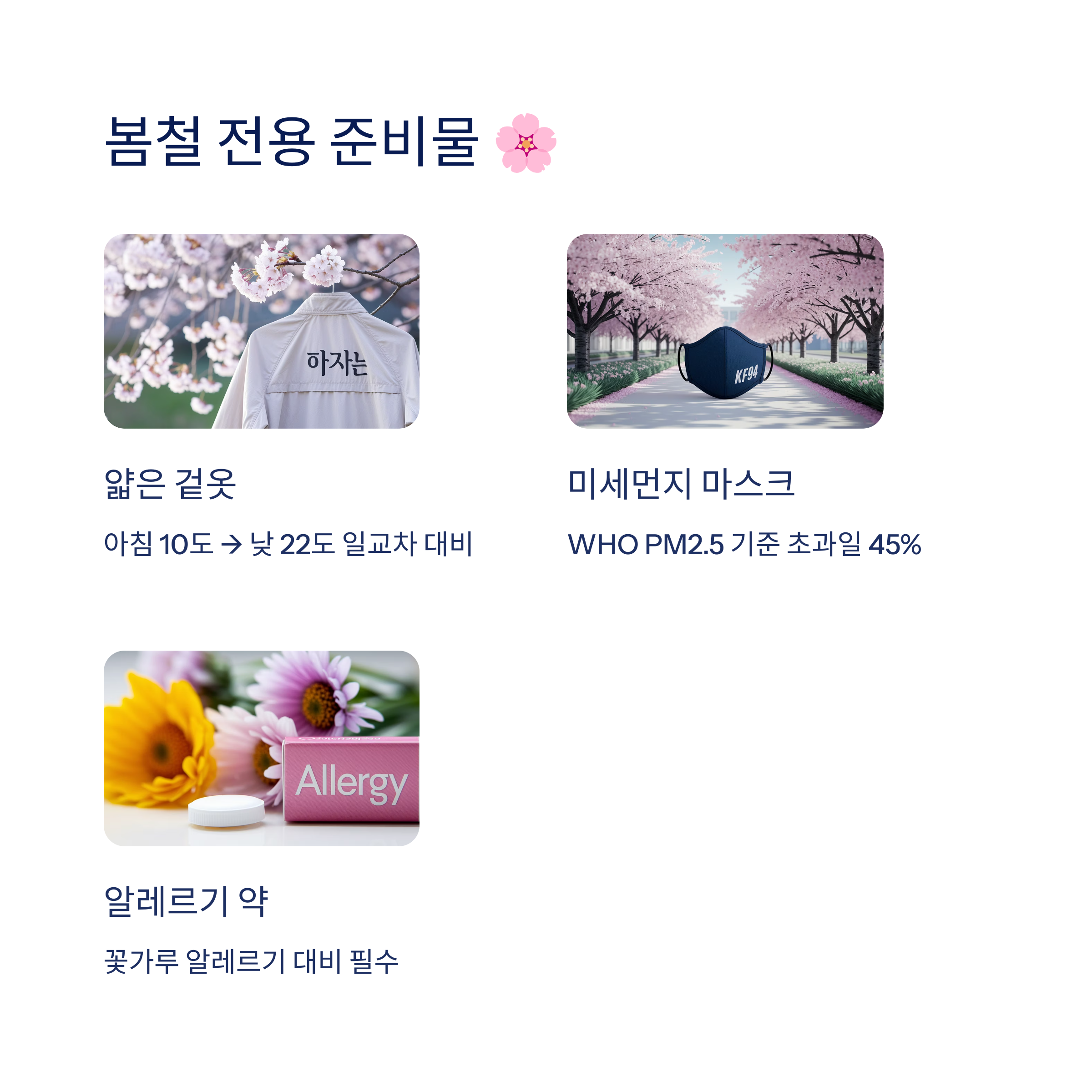 봄철 전용 준비물: 일교차와 미세먼지 대비