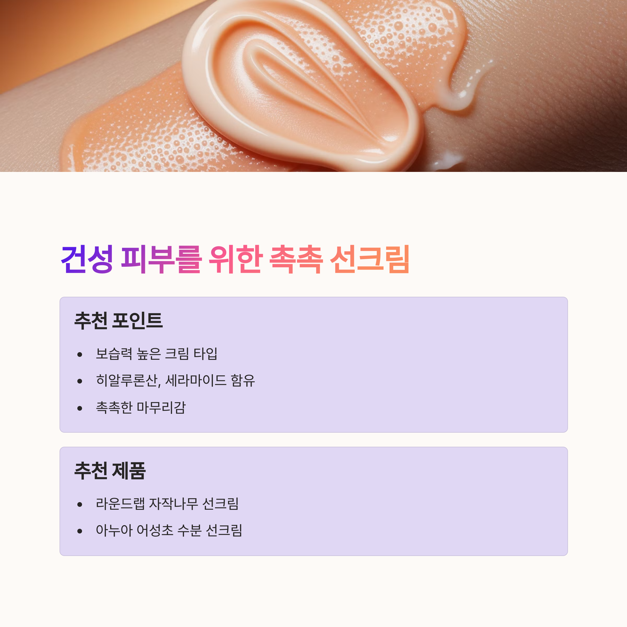 | 피부 타입별 선택 기준 | 지성은 산뜻함, 건성은 보습력, 민감성은 무자극 성분 위주로 선택 |