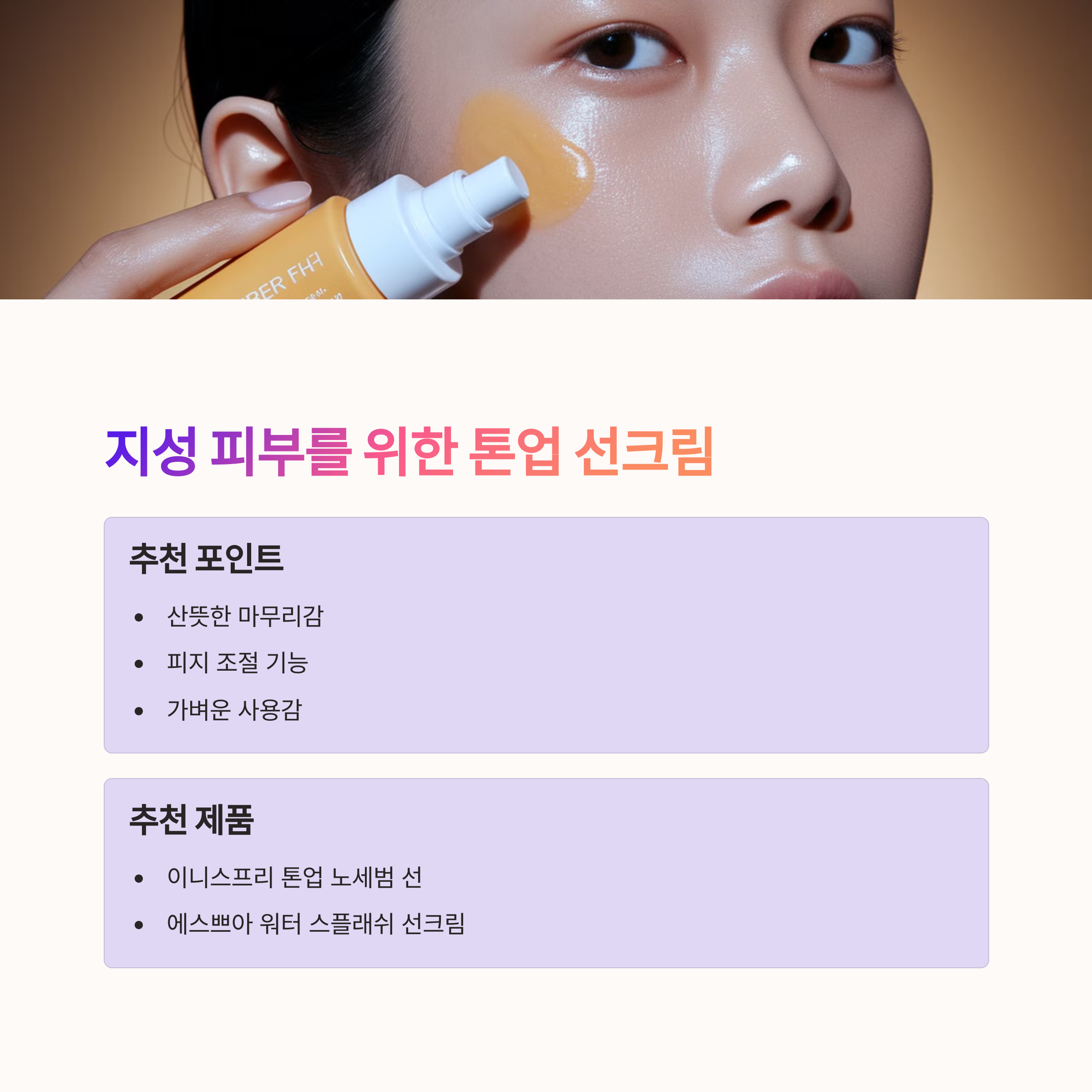 자외선 차단은 사계절 내내 필수지만, 요즘은 그 이상의 기능을 갖춘 ‘톤업 선크림’이 대세죠. 단순한 차단제 역할을 넘어 피부 톤을 자연스럽게 밝혀주고 베이스 메이크업의 간소화까지 도와주는 톤업 선크림은 바쁜 현대인의 뷰티 루틴에 꼭 필요한 아이템으로 떠오르고 있습니다. 하지만 피부 타입에 따라 맞지 않는 제품을 사용할 경우 각질 부각, 뭉침, 끼임, 트러블 등의 부작용이 생길 수 있기 때문에 무작정 인기 제품만을 따르기보다는 성분과 사용감, 제형을 꼼꼼히 따져보는 것이 중요합니다. 특히 민감성 피부는 자극 유발 성분을 피해야 하고, 지성 피부는 유분이 많은 톤업 제품 사용 시 답답함과 번들거림을 느낄 수 있어 피부별 맞춤형 추천이 필수입니다. 오늘 포스팅에서는 시중 인기 제품들의 성분 분석과 실제 사용자 후기를 기반으로 각 피부 타입에 꼭 맞는 톤업 선크림을 카테고리별로 정리해드릴게요. 자외선 차단, 미백, 진정, 커버력, 사용감까지 다양한 요소를 고려한 실속템을 모아 여러분의 피부 컨디션에 딱 맞는 아이템을 손쉽게 찾으실 수 있도록 구성했습니다. 지금부터 ‘무작정 사서 실패’ 없는 스마트한 선택을 위해 본격적인 추천 리스트를 함께 살펴보시죠.