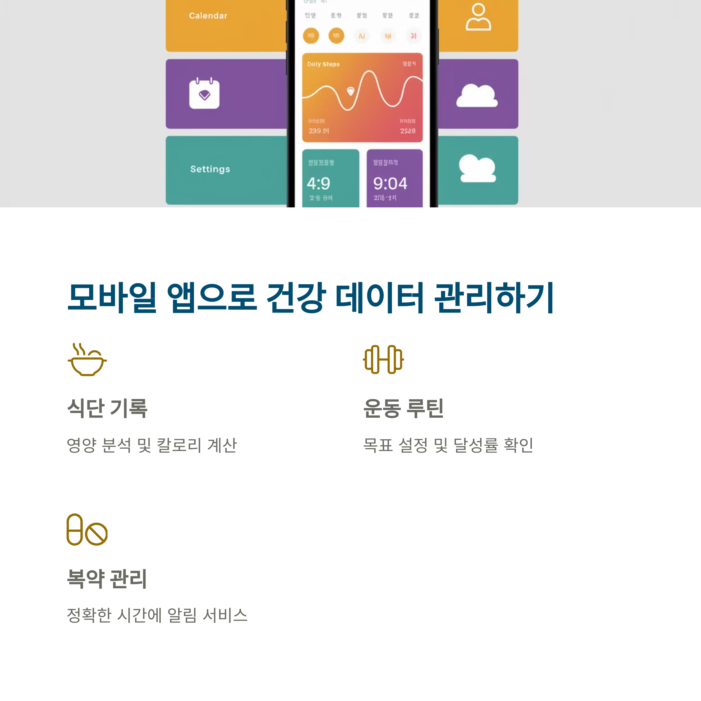 | 스트레스, 수면시간, 활동량 | 자동 연동 앱, 웨어러블 기기 이용 | 건강 리듬 파악, 수면 질 개선 계획 수립 |