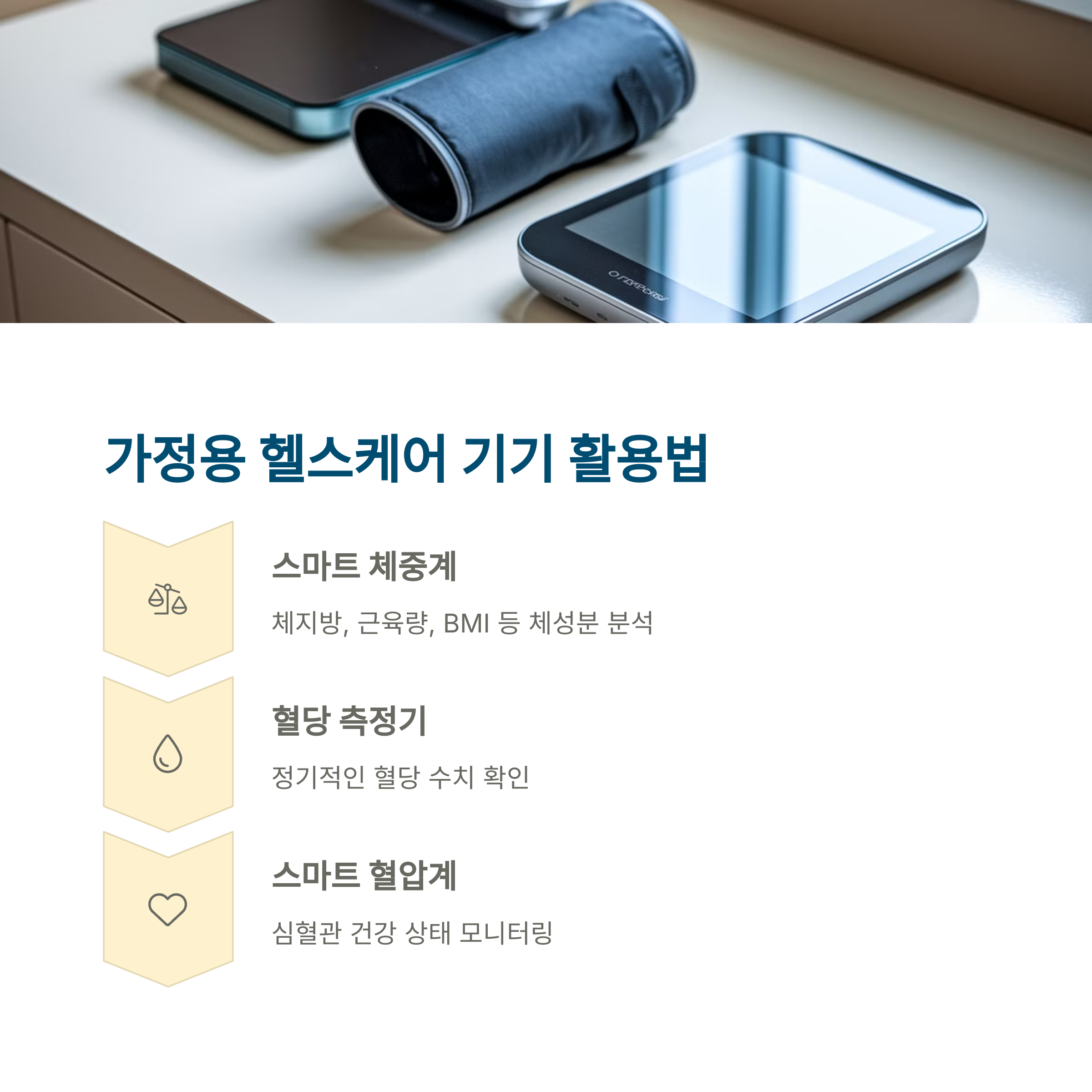 | 혈압, 혈당, 체중, 체온, 심박수 | 매일 일정 시간대 기록, 전용 앱 활용 | 이상 징후 감지, 패턴 분석, 병원 진료 연계 |