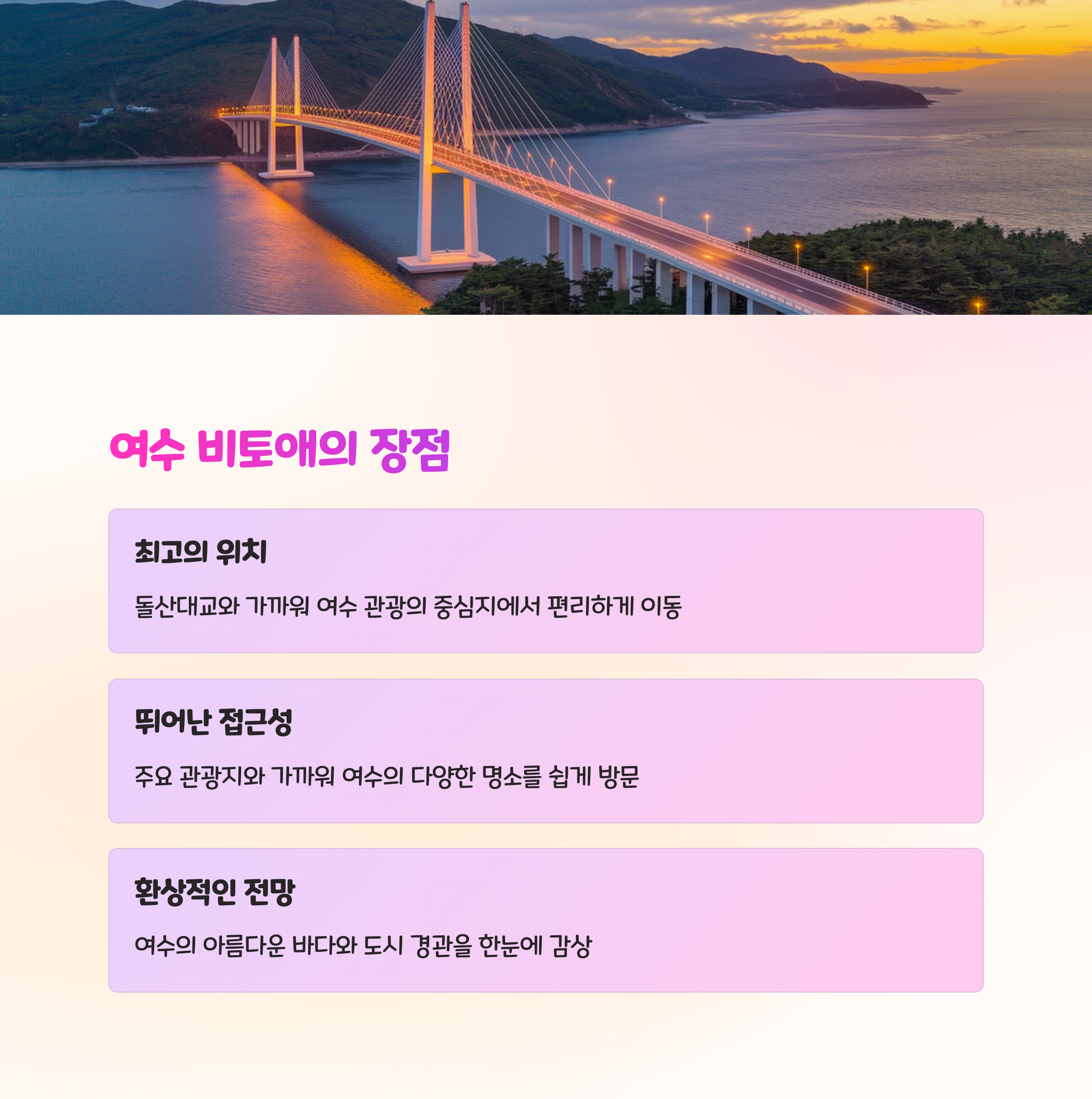 | 비토애 위치 | 여수 돌산대교 인근, 바다 전망 좋은 입지 |
