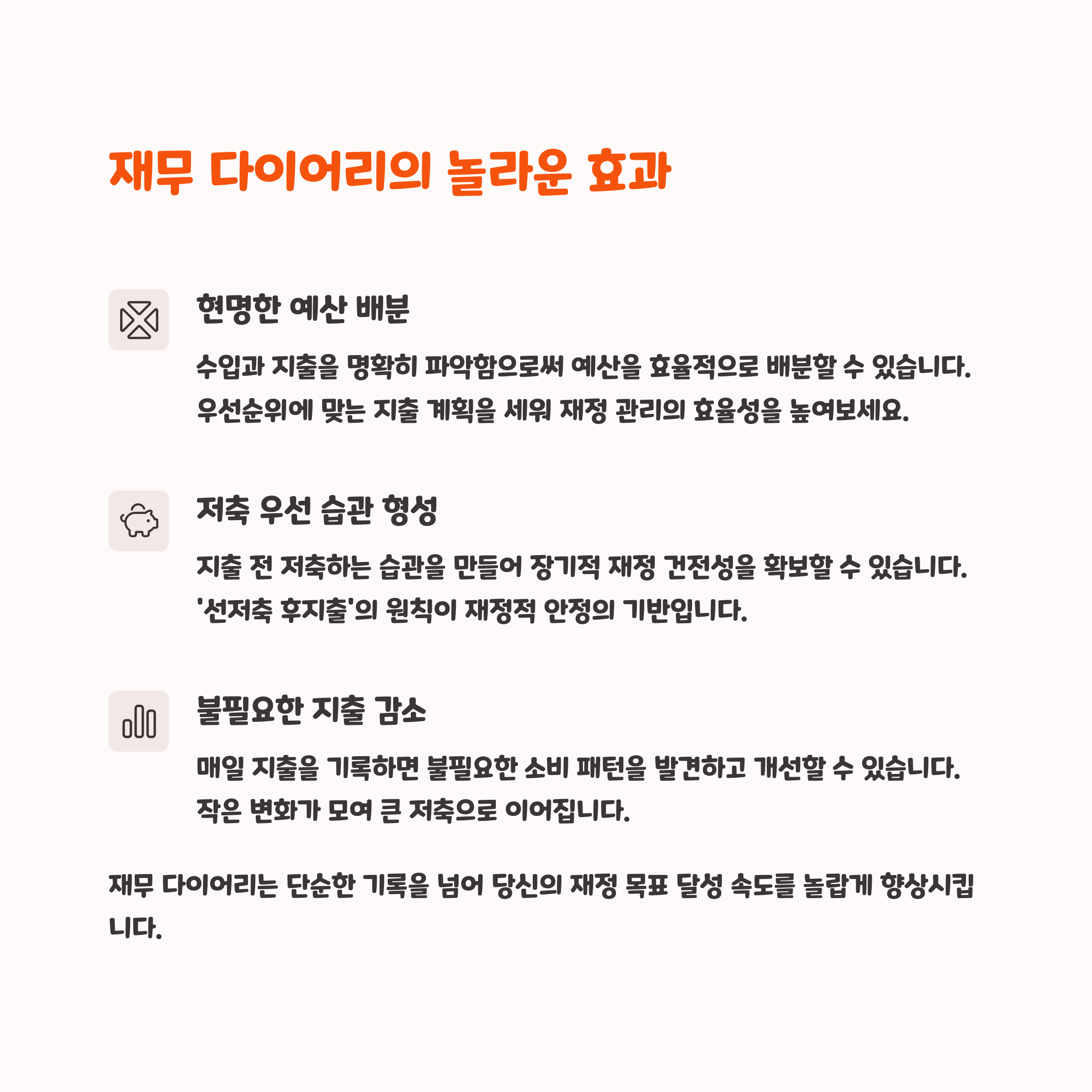 | 재무 다이어리란? | 수입과 지출을 매일 정리하는 기록 습관입니다. |
