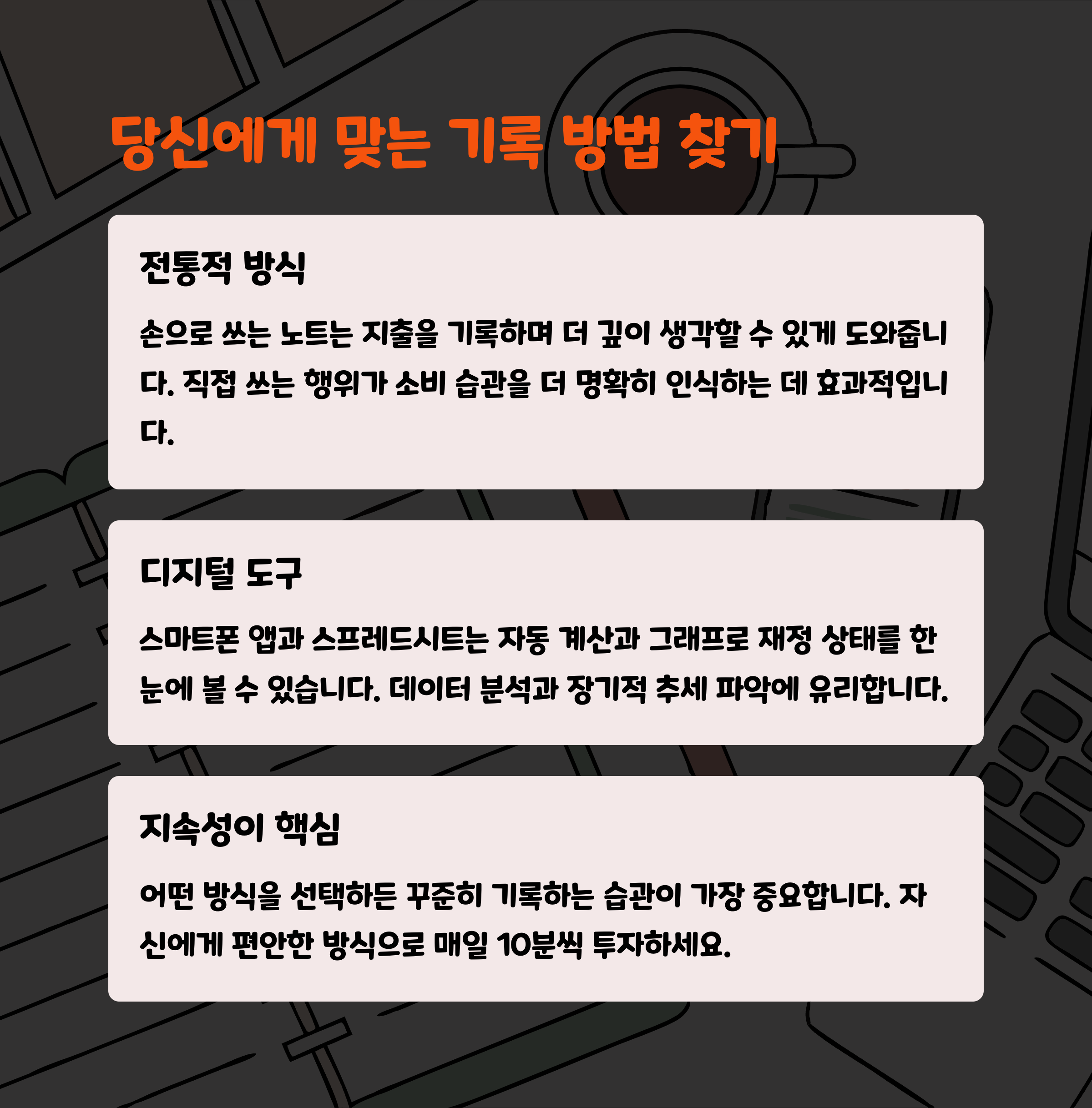 | 왜 10분이면 충분할까? | 간단한 기록으로도 소비 습관을 바꿀 수 있기 때문입니다. |