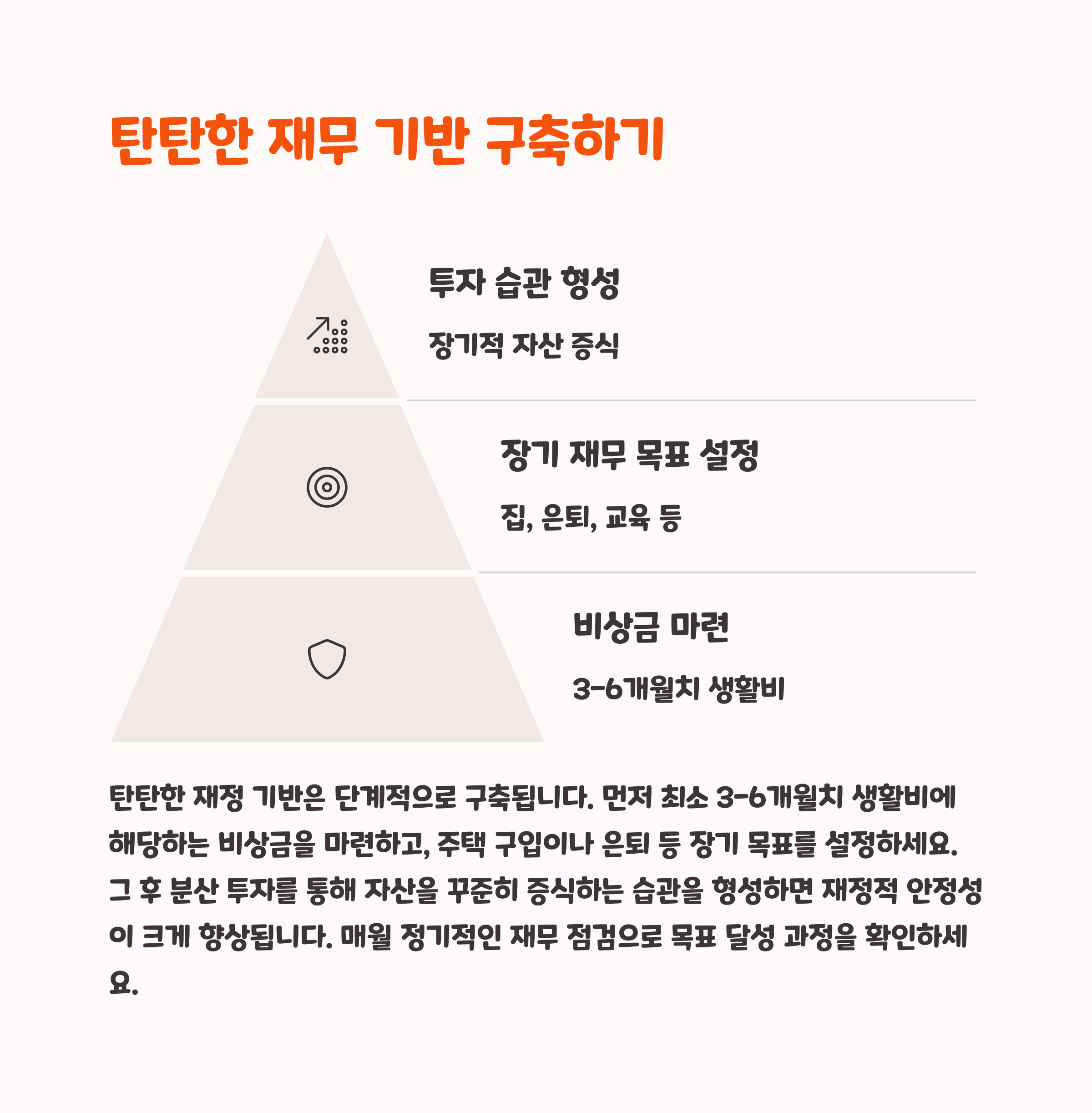 | 하루 10분 투자로 누구나 쉽게 시작할 수 있어요. | 50/30/20 법칙으로 예산 배분이 쉬워집니다. | 정기 리뷰로 꾸준한 개선이 가능해집니다. |