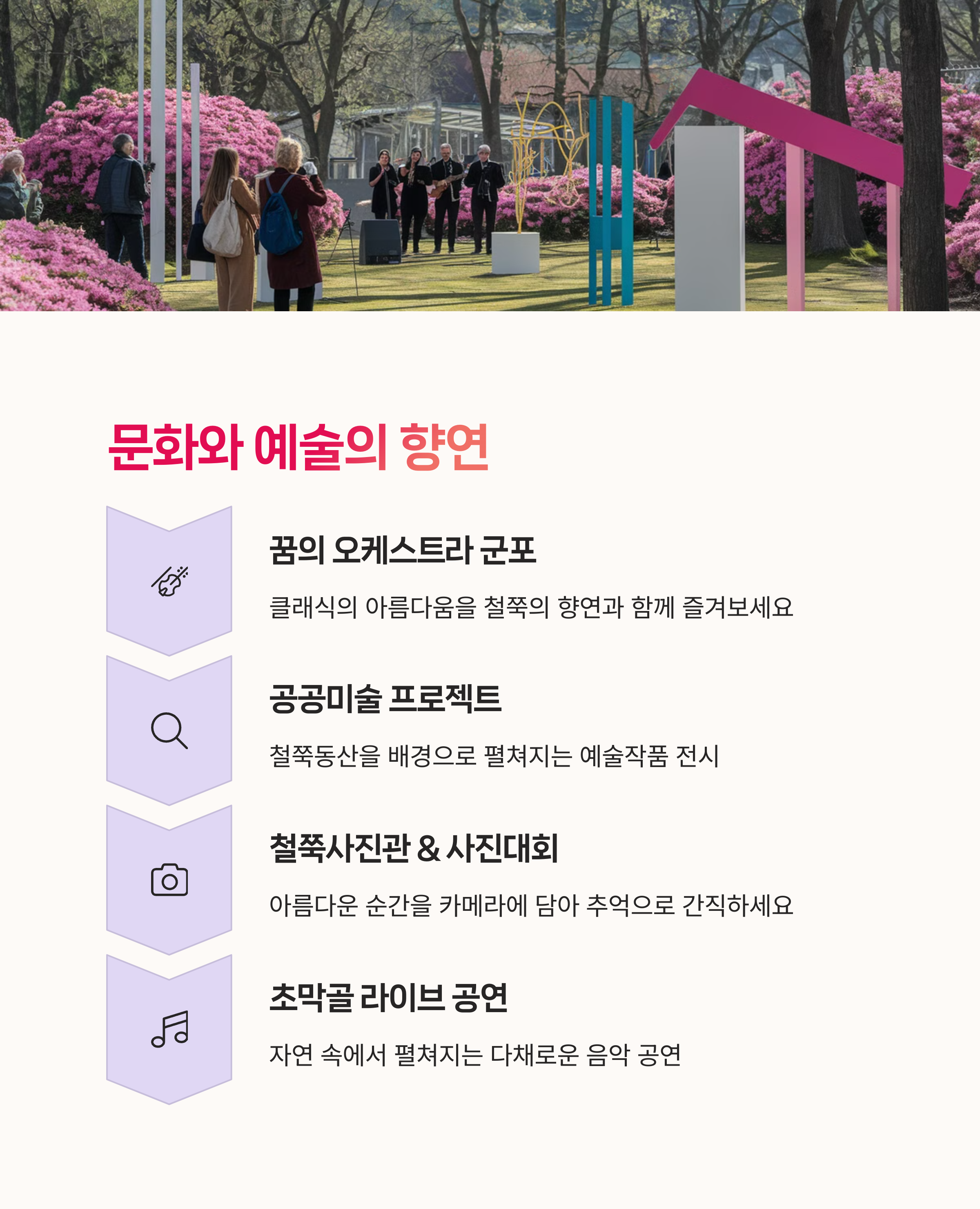 | 4/20~27 | 버스킹, 철쭉 합창제, 클래식 나잇 등 | 철쭉동산 일대 |