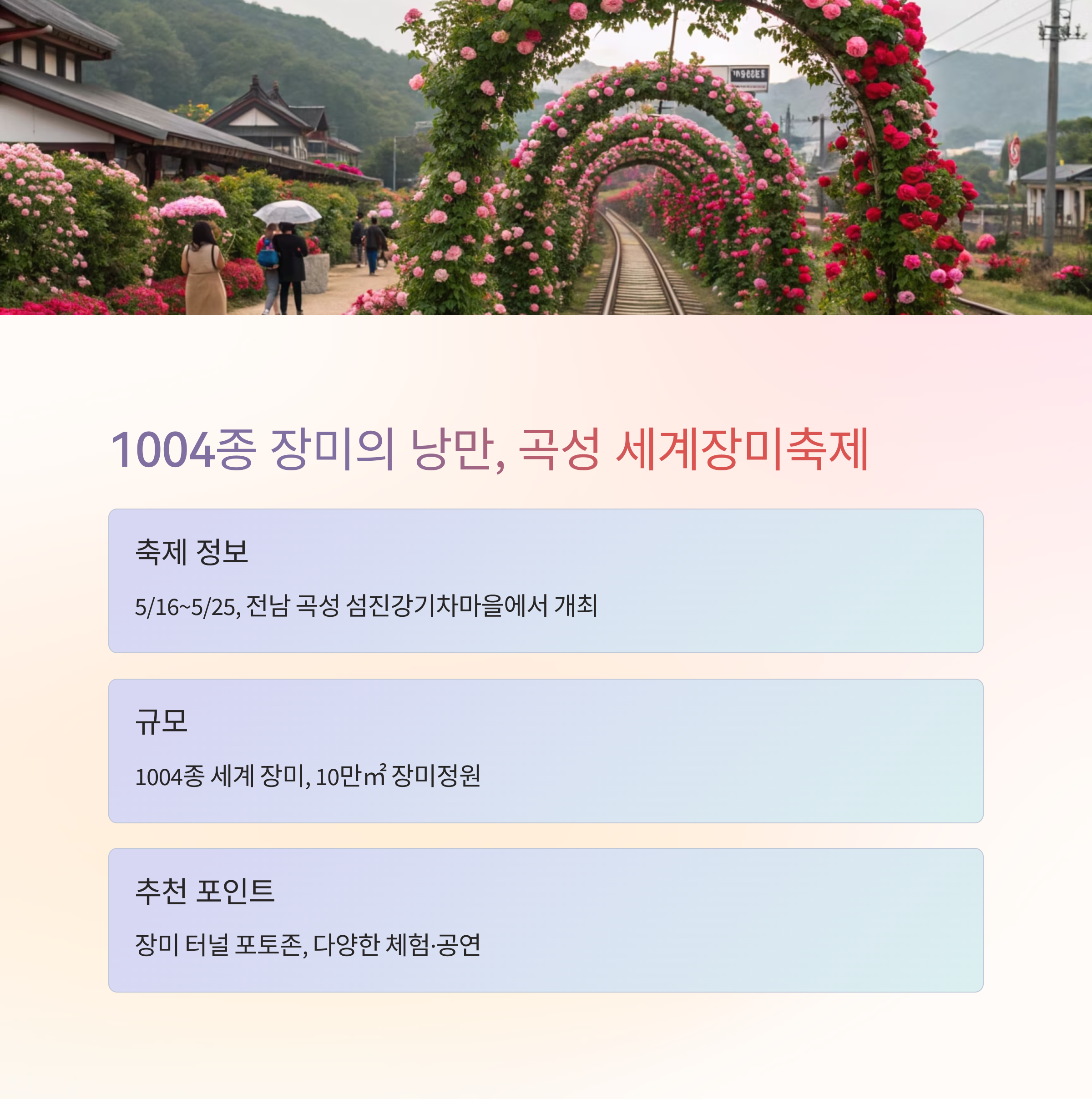 전남 곡성 기차마을에서 열리는 세계장미축제는 장미 덕후, 사진 덕후, 데이트 덕후라면 절대 놓칠 수 없는 낭만 가득한 봄날의 파라다이스입니다.