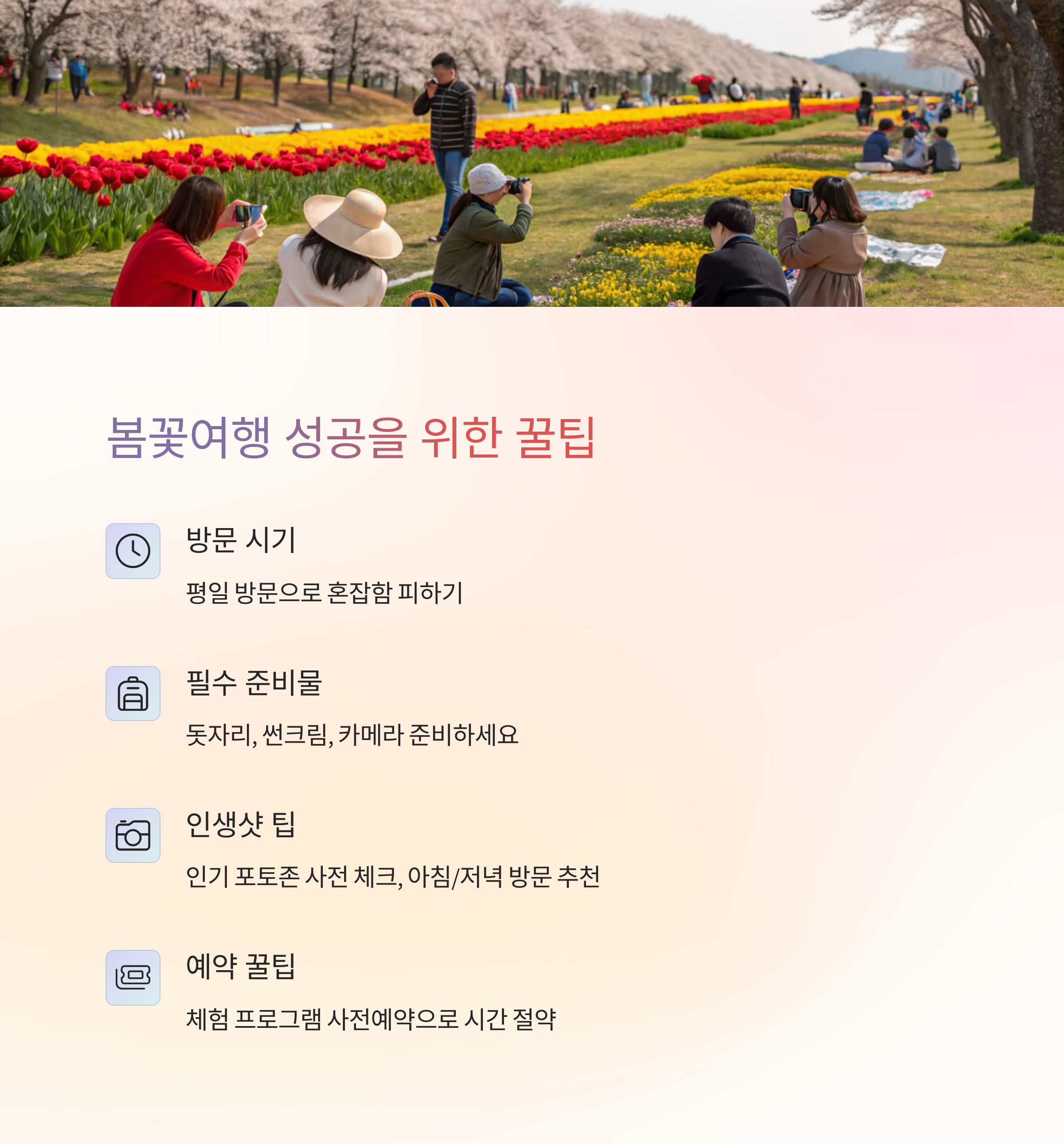 이번 글에서 소개해드린 꽃 명소들, 어떤 곳이든 가보시면 후회 없으실 거예요!