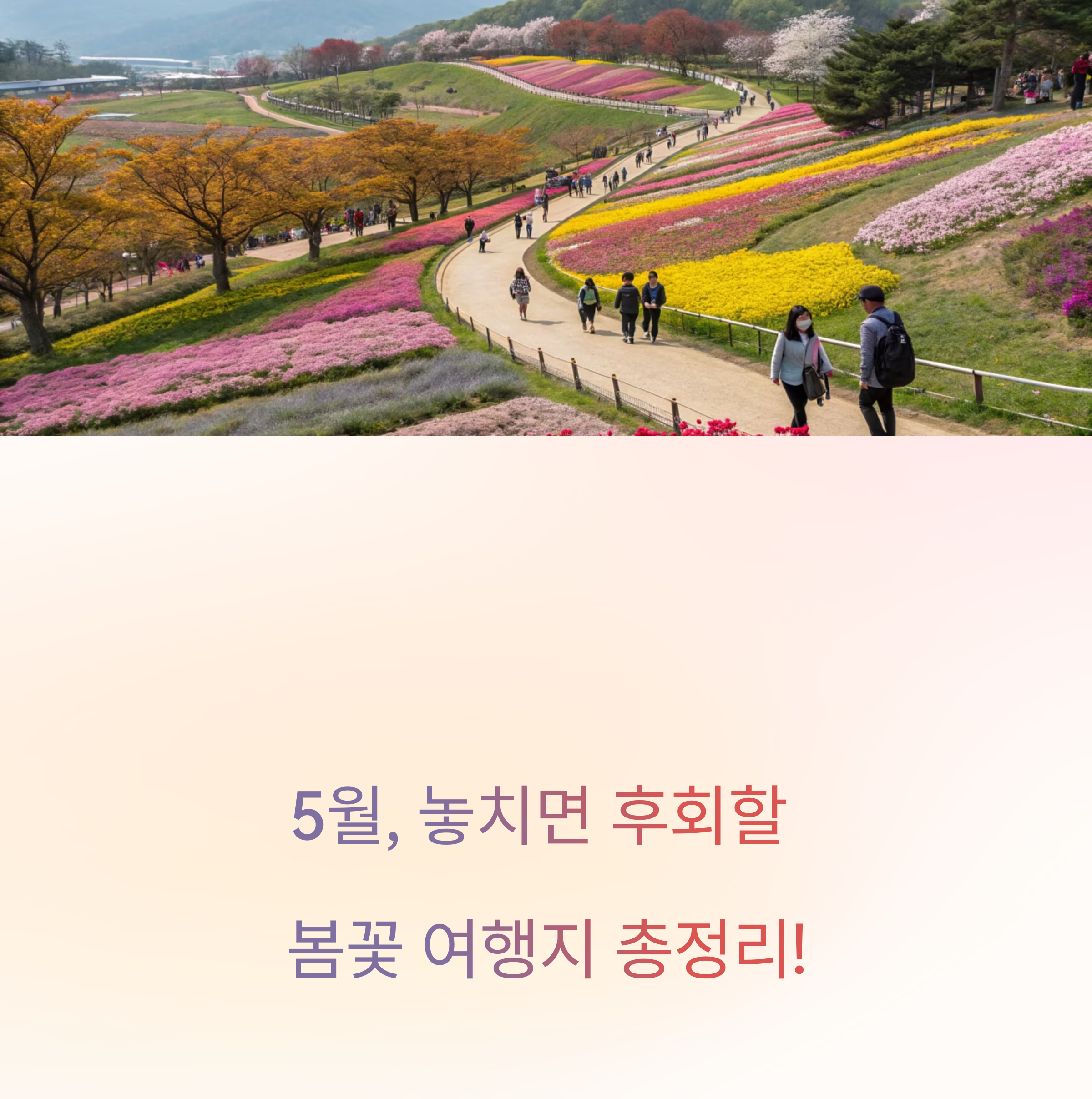 안녕하세요 여러분!싱그러운 5월, 다들 어디론가 훌쩍 떠나고 싶은 마음이 드는 계절이죠? 🌸혹시 이런 생각 해보신 적 있으신가요?“꽃축제 다 끝나버리면 어쩌지?”걱정 마세요! 지금부터라도 충분히 즐길 수 있는 전국의 5월 봄꽃 명소들을 싹~ 정리해드릴게요 🌿꽃양귀비, 장미, 튤립, 수레국화, 라벤더까지!눈과 코가 즐거운 봄의 정원으로 초대합니다 🌷 목차고양국제꽃박람회 🌼곡성 세계장미축제 🌹태안 세계튤립박람회 🌷울산대공원 장미축제 🌹장성 황룡강 길동무 꽃길 축제 🌻 고양국제꽃박람회 🌼“이렇게 많은 꽃을 한자리에서 본 적 있으세요?”경기도 고양시 일산 호수공원에서 열리는 고양국제꽃박람회는 봄꽃의 절정을 가장 풍성하게 즐길 수 있는 국내 최대 꽃박람회입니다.2025년에는 4월 25일부터 5월 ..