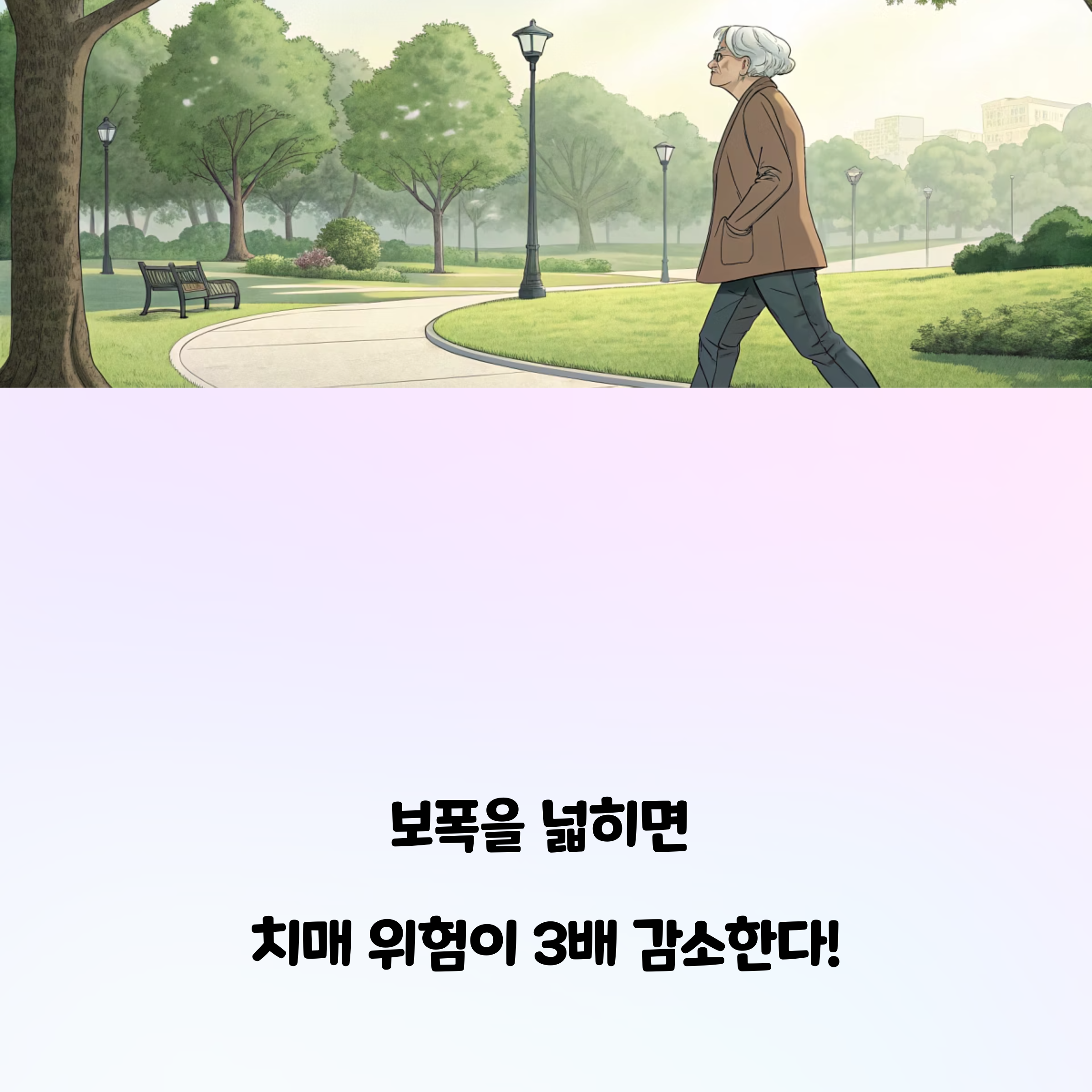 안녕하세요 여러분! 혹시 하루에 만보 걷기를 목표로 실천 중이신가요?하루 만보! 많이 걷는 건 분명 좋은 습관이지만… 그보다 더 중요한 게 있다면?바로 ‘보폭’입니다.최근 연구에 따르면 보폭이 좁은 사람은 치매 위험이 3배 이상 높다고 해요.단순히 많이 걷는 것보다 '어떻게' 걷느냐가 뇌 건강에 큰 영향을 준다는 사실!오늘은 보폭 넓히는 걷기 습관을 통해 치매를 예방하고 두뇌 건강을 지키는 7가지 팁을 알려드릴게요 😊목차보폭이 좁으면 왜 위험할까? 🧠보폭과 뇌 활성화의 관계 🔄일본식 치매 예방 걷기법 💡보폭 넓히는 실전 걷기 기술 🚶‍♀️초보자용 실천 루틴 🗓️실제 연구와 사례 분석 📊 보폭이 좁으면 왜 위험할까? 단순히 ‘짧게 걷는다’는 것이 이렇게 큰 차이를 만들까요?정답은 ‘보폭’이 뇌..